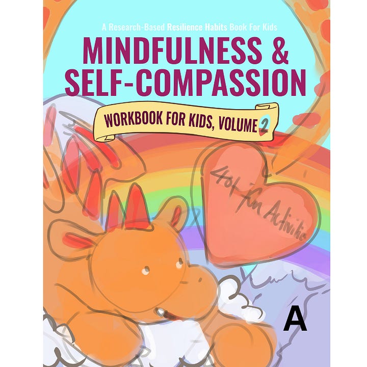 If you have a moment, I’d also love your feedback on the subtitle. Here are three possibilities for the Mindfulness and Self-Compassion Workbook for Kids, Volume 2: